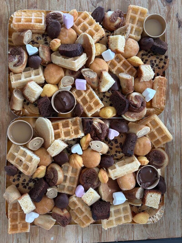 - Gouter: 40€ (environ 25 pièces sucrées parmis: crêpes, gaufres, pancakes, cake citron, brownie, fondant au chocolat, madelinette, quatre quart, cookies….en fonction des dispo)